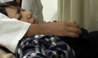Loud oriental college girl getting fingered by her doctor on the medical bed